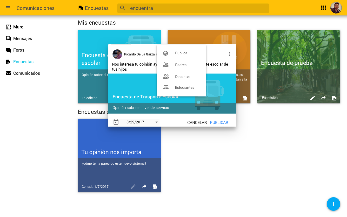 • Genera múltiples tipos de encuestas de opinión, que puede ayudar a mejorar cada uno de los procesos que se llevan a cabo en los diferentes ámbitos o espacios del ecosistema educativo.