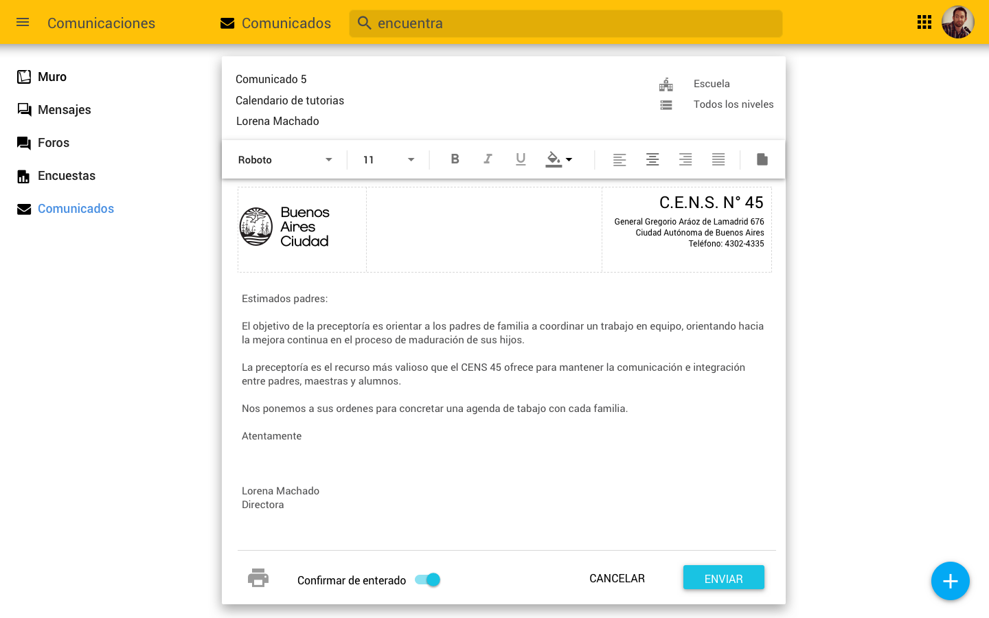 Publicación de avisos y comunicados oficiales: